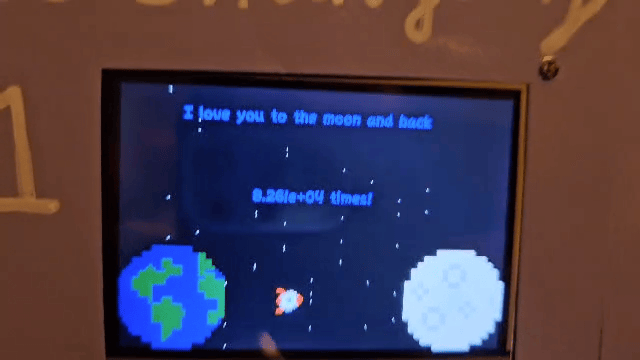 It’s untrue to say no one asked for this - My friend wanted to gift his wife a custom trinket symbolizing his love “to the moon and back” for her. We met up and quickly sketched out an idea to work with, based on something like this example from Adafruit. A trip to the local Microcenter and several stops around to find an elusive CR1220 coin battery later, and I was off to the races building out the software.